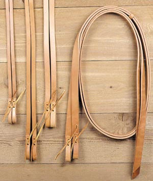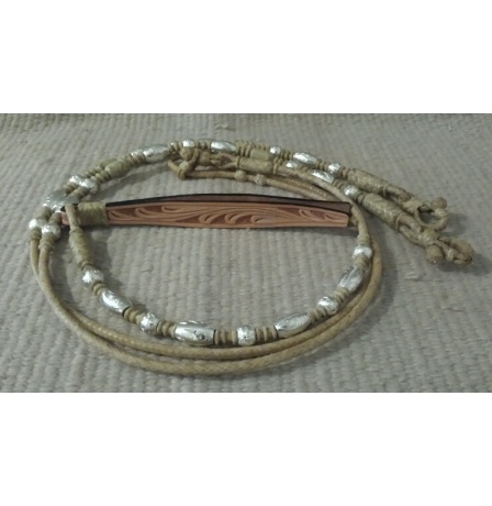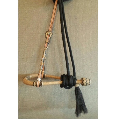 Adjustable to fit horse Customize fit by adjusting crown piece and noseband 2 training knots on noseband placed in specific locations to apply pressure in certain areas of the horses nose Rawhide tip and noseband Promotes better control while teaching horses to yield to pressure No hardware Fully washable Will not rot Leather Popper Horsemanship polypropylene lead 12' Long by 5/8'' diameter, detachable Lami-Cell Natural Rope Halter Braided natural rope 5/16'' diameter