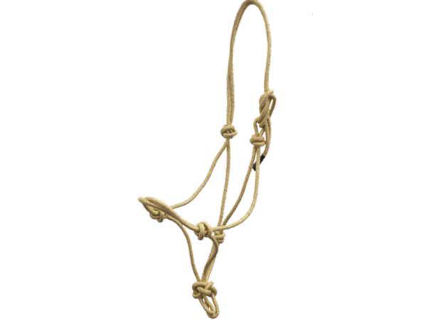 Adjustable to fit horse Customize fit by adjusting crown piece and noseband 2 training knots on noseband placed in specific locations to apply pressure in certain areas of the horses nose Promotes better control while teaching horses to yield to pressure No hardware Fully washable Will not rot 7' Long by 5/8'' diameter detachable polypropylene lead Lami-Cell Natural Rope Halter Braided natural rope 5/16'' diameter