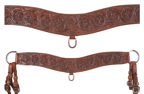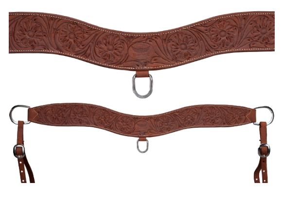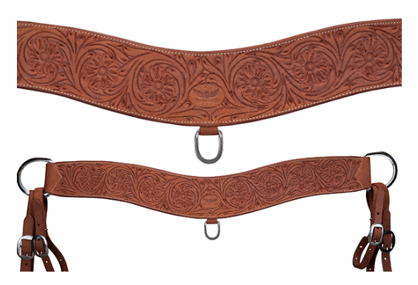 High Point Pleasure Breast Collar Two-piece, 13/4" Buckstitched body Floral tooling. Choose from four colors. No. 3210 brown elegance No. 3209 medium oil No. 3211 glotan antique No. 3214 jet black Made in the USA