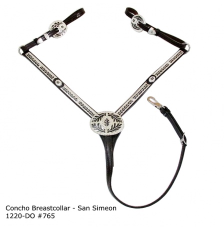 Scalloped Breast Collar shown in mahogany leather with 900 conchos.