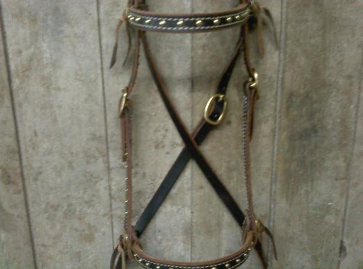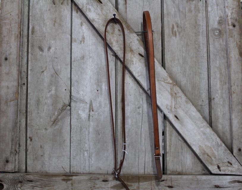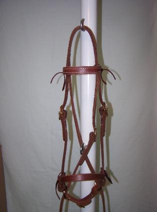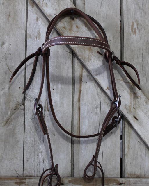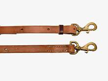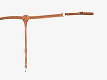 Big Horn Breast Collar 1" wide straight breast collar. 3/4" ends. 3/4" tie down. Doubled and stitched. Hand finished. #2 brown. Brass hardware. No. A02362 - Brass Hardware No. A03514 - Nickel Hardware
