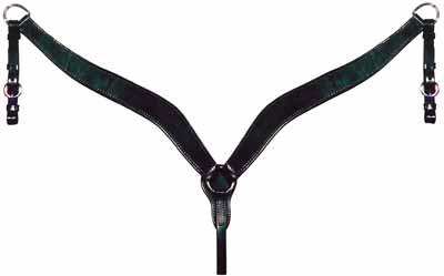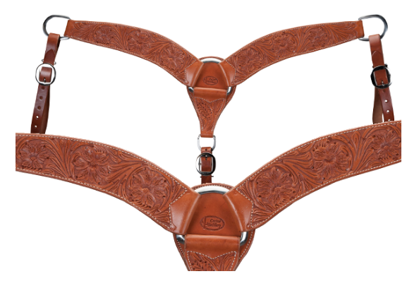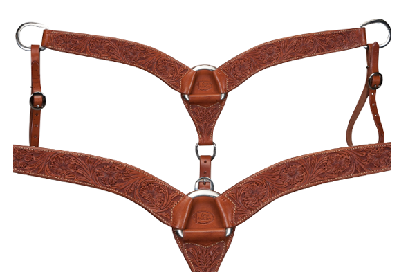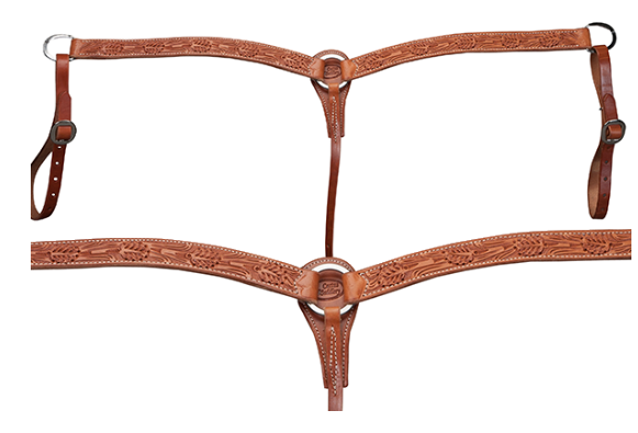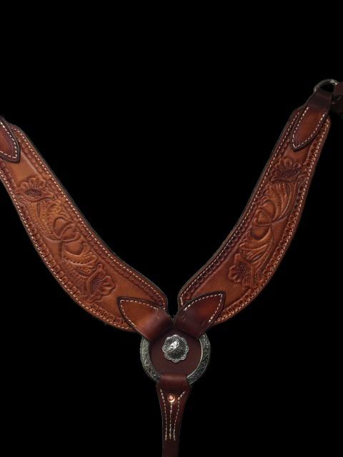 Arabian or Colt Breast Collar Floral Tooled Medium oil Two piece 1 3/4" shapped body Adjustable straps and tie-down. No. 3175