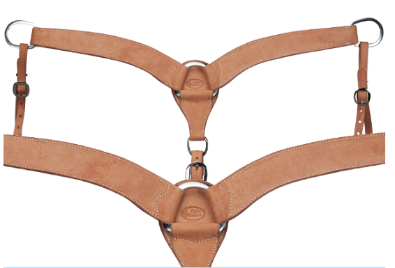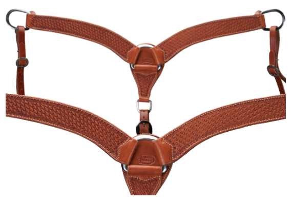 These are the largest and widest of our standard 3-piece breast collars. 100% Hermann Oak Leather Stainless Steel Hardware