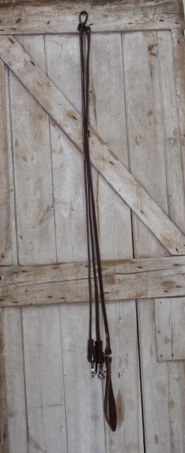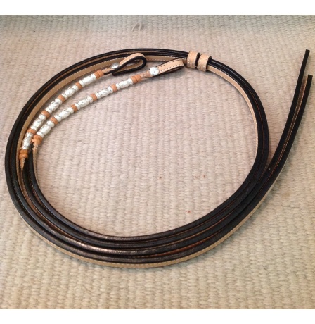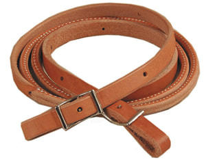 Rosewood saddle skirting leather that is spider stamped with brass halter bolts and o-ring with a stainless steel buckle