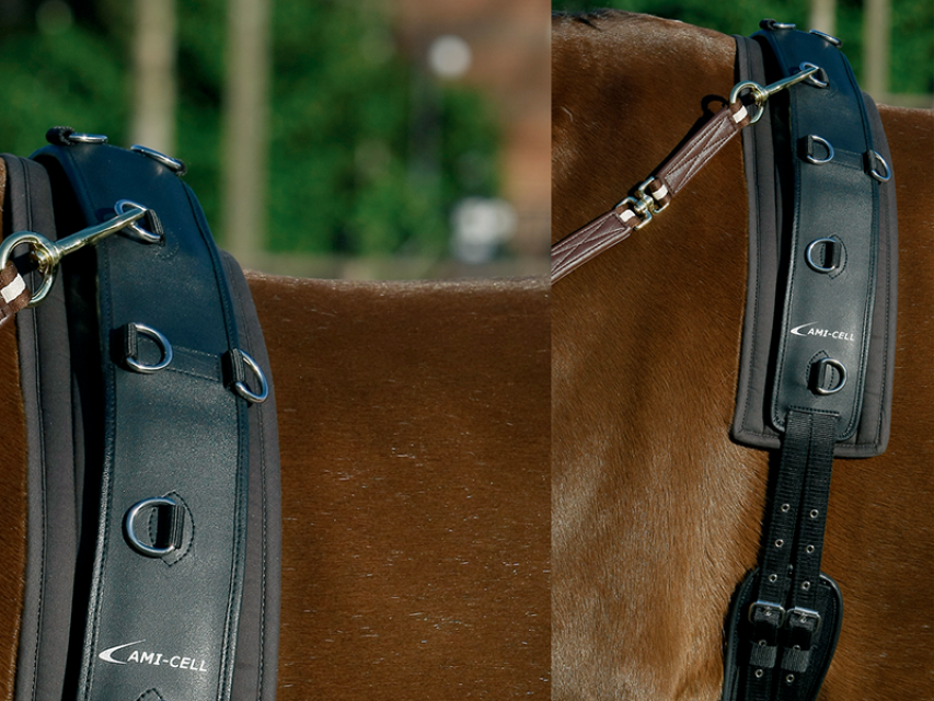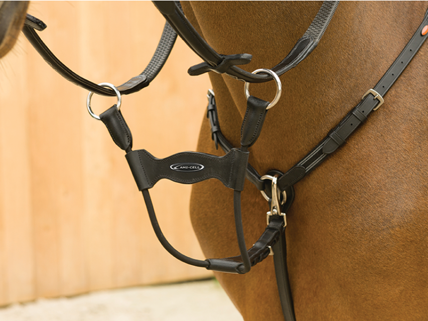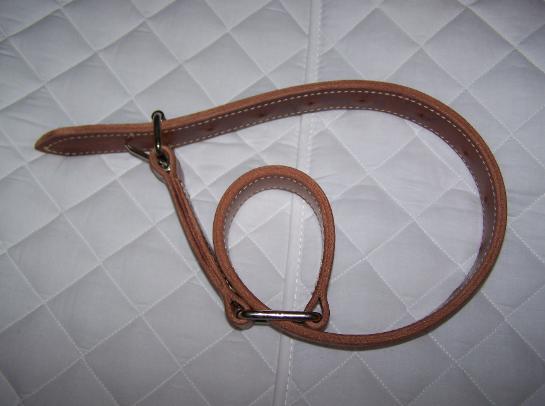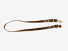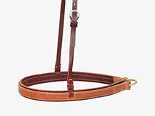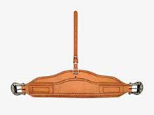 All-Around Breast Collar Made of finished bridle leather Doubled and stitched for long wear. 2 1/2" Shaped Two-piece body Smooth finish. Available in Rich Chestnut or Medium Oil. With stainless hardware. No. 3199 Made in the USA