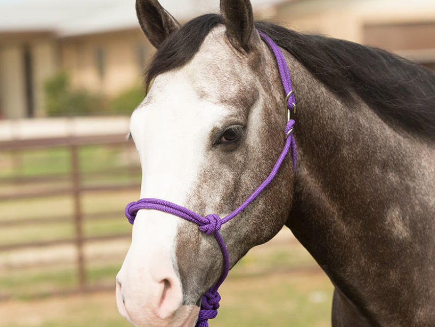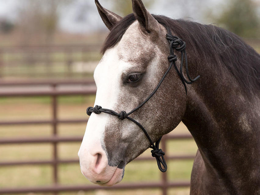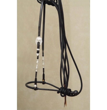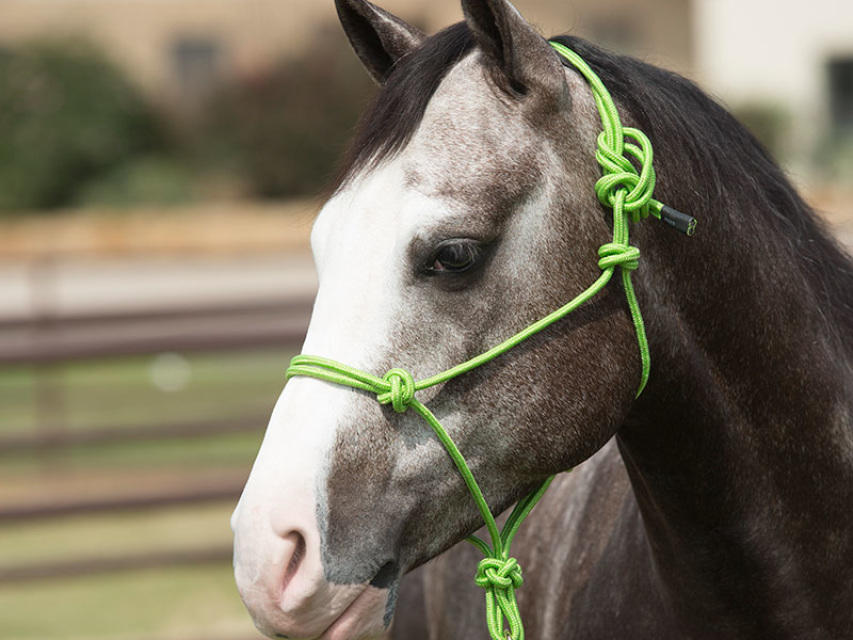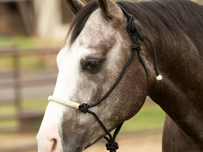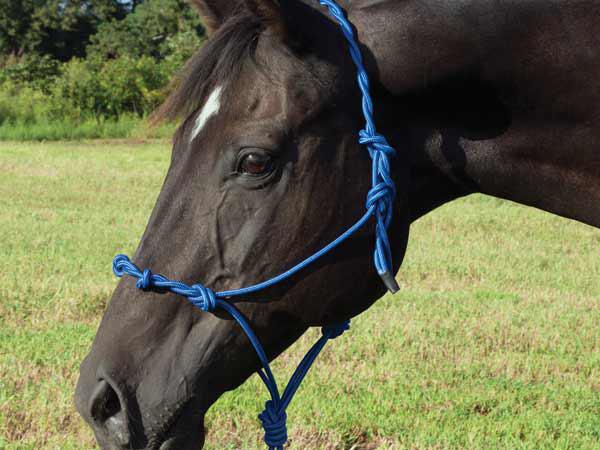 Adjustable to fit horse Customize fit by adjusting crown piece and noseband 2 training knots on noseband placed in specific locations to apply pressure in certain areas of the horses nose Promotes better control while teaching horses to yield to pressure No hardware Fully washable Will not rot Braided soft polypropylene rope knotted 1/4'' diameter