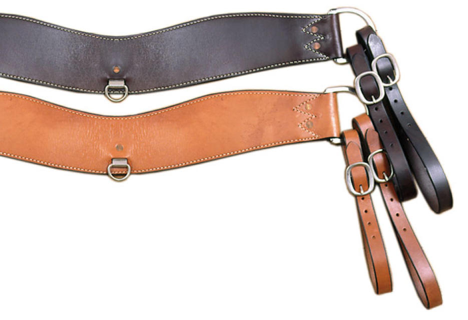 A hand crafted Russet 1 3/4 shaped body, smooth finish with girth tie down and adjustable snap, smooth leather center pinch guard. In picture from top, Rich Chestnut top, medium oil second, Jet black third, Saddle brown on bottom. No. 3169 Rich Chestnut No. 3166 Medium Oil No. 3168 Jet Black No. 3185 Saddle Brown