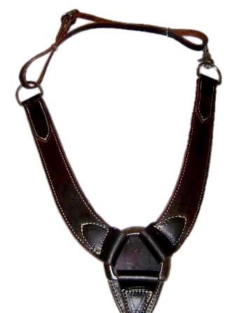 Heavy duty double ply breast collar with neck strap, trigger snaps and steel hardware. Shown in medium oil.
