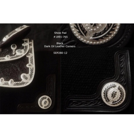 Black Show Pad with Conchos Available with light oil, dark oil, chestnut, chocolate, and black leather corners.