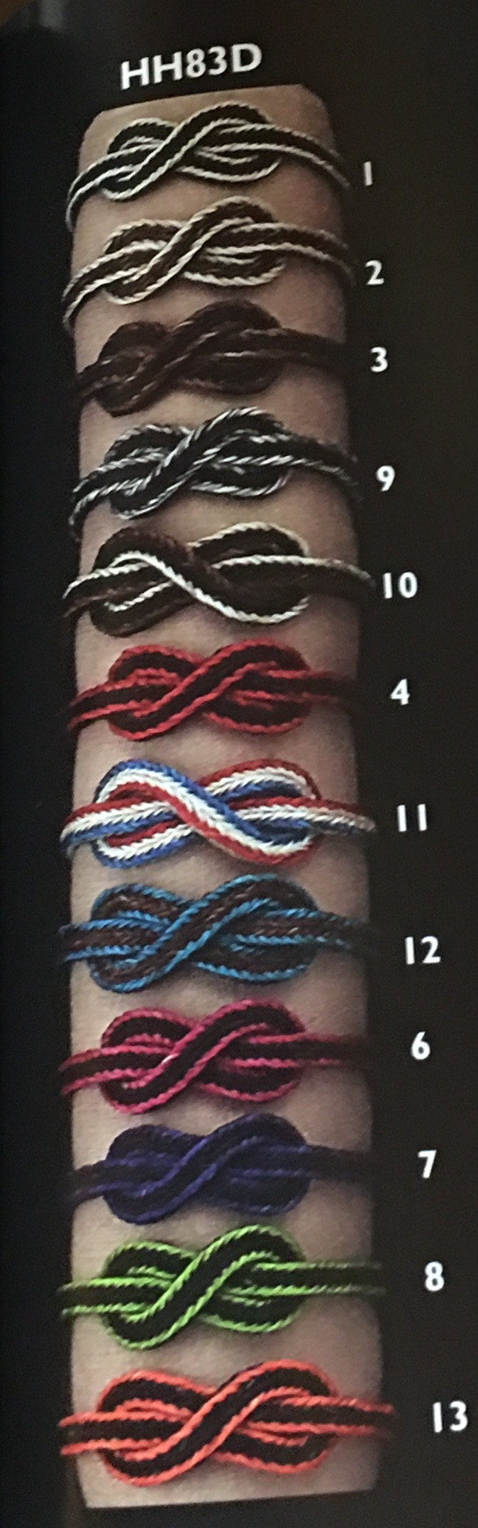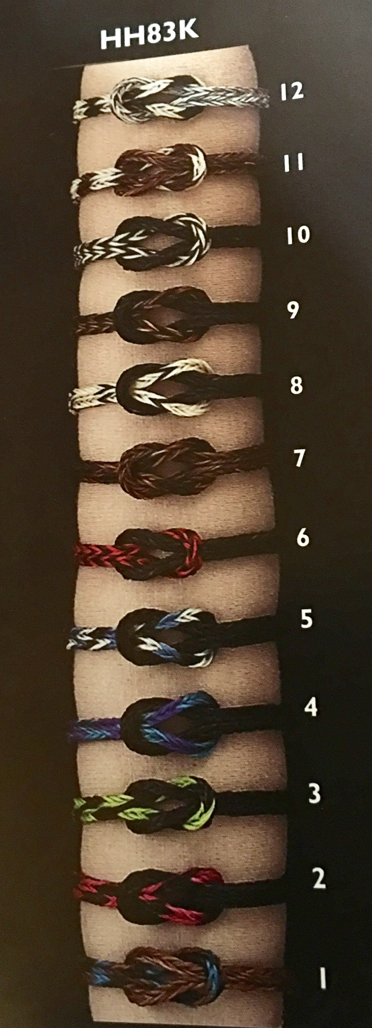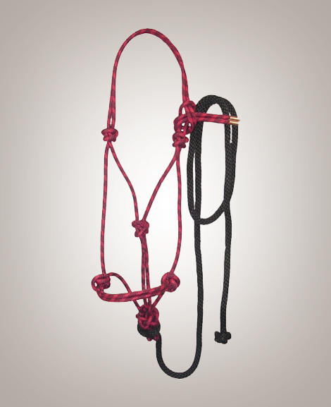 Adjustable to fit horse Customize fit by adjusting crown piece and noseband 4 training knots on twisted noseband placed in specific locations to apply pressure in certain areas of the horses nose Promotes better control while teaching horses to yield to pressure No hardware Fully washable Will not rot 12 Pack Assorted (One of Each Color: Red, Lime, Purple, Yellow, Orange, Brown, Tan, Black, Green, Hunter, Hot Pink, Blue) Equi-Sky Mountain Rope Halter Braided soft polypropylene rope knotted 5/16'' diameter