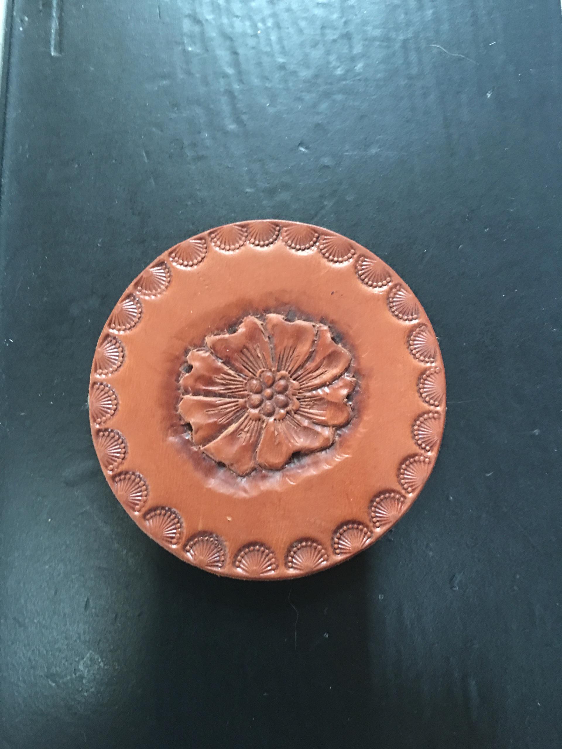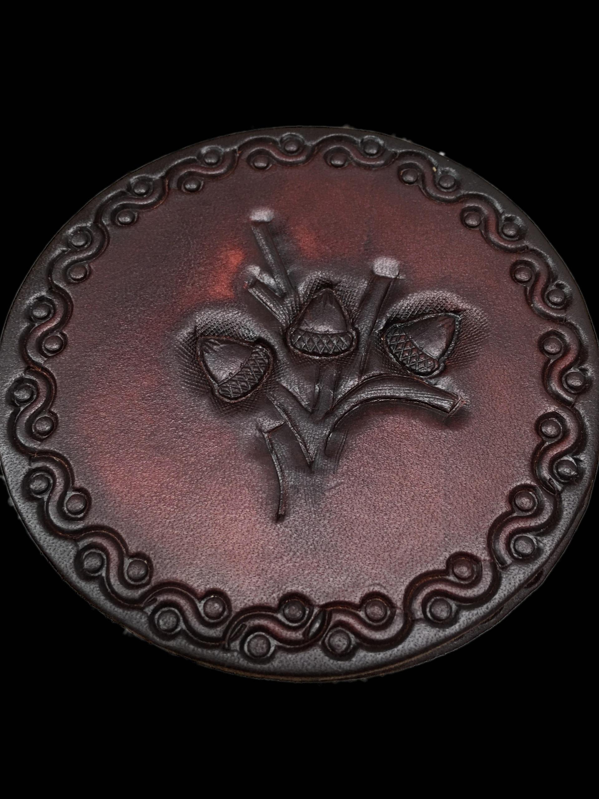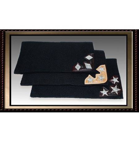 Show Pad with 3 Conchos Shown in #470 (Star) and #471 (Diamond) silver patterns. Available with light oil, dark oil, chestnut, chocolate, and black leather corners.