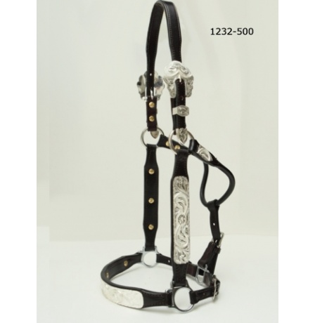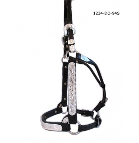 Show halter - straight cut -with 500 silver in dark oil. Available in Full, Mare, 2 Year Old and Yearling sizes.