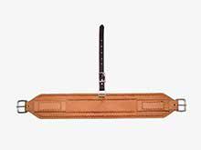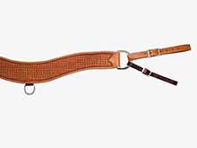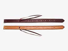 Golden saddle skirting leather that is spider stamped with brass halter bolts and o-ring with a stainless steel buckle