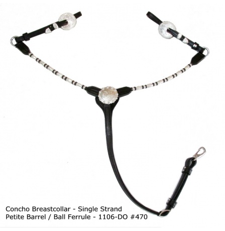 Concho Breast Collar - Single Strand Petite Barrel / Ball Ferrule Available in light oil, dark oil, chestnut, chocolate, and black.