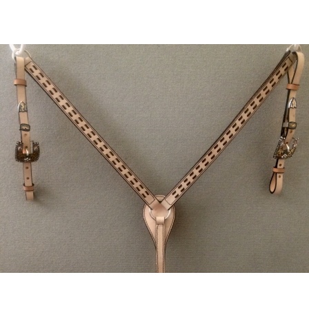 Standard 3-piece breast collar with your choice of tooling. 100% Hermann Oak Leather Stainless Steel Hardware